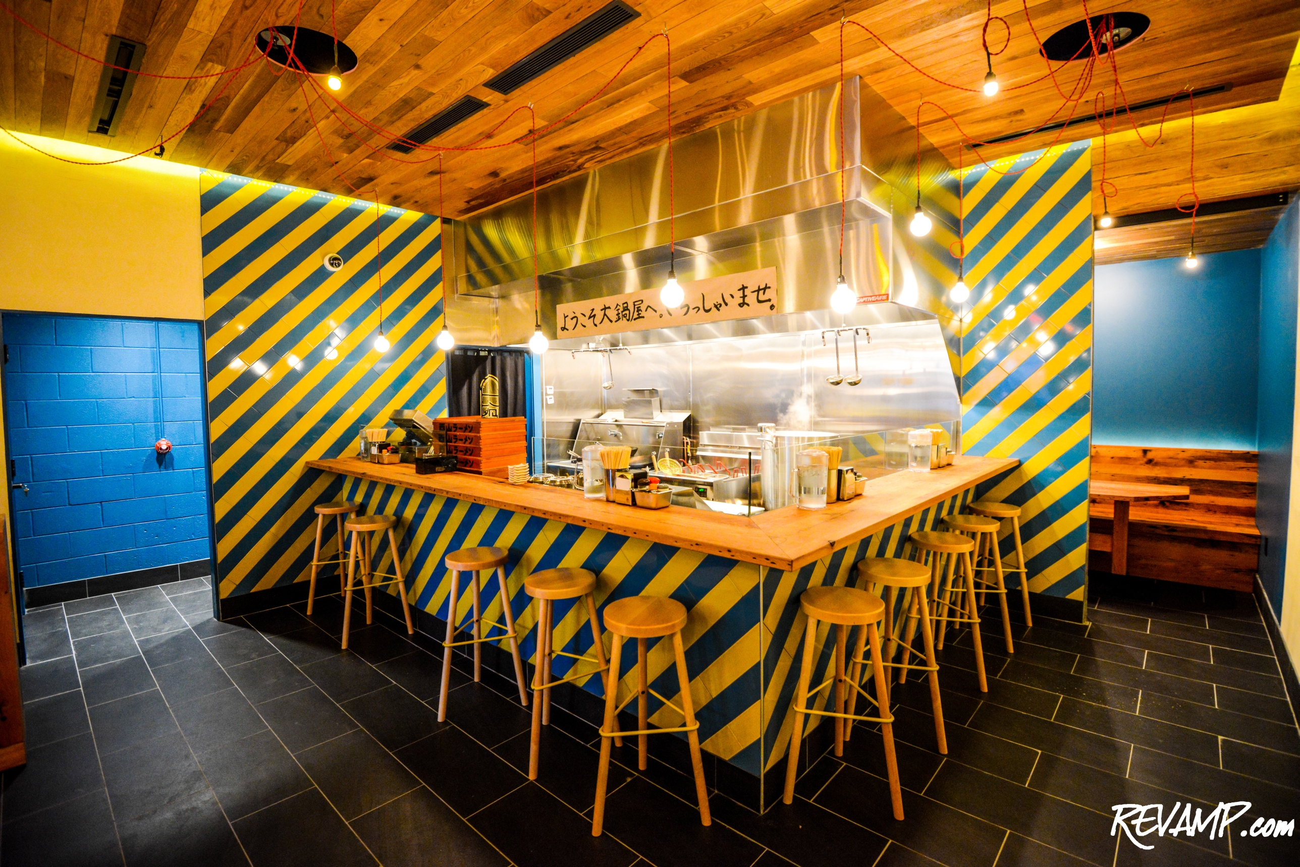 Daikaya opens tonight at 5:00 p.m. for dinner and will serve until 11:00 p.m. Regular lunch and dinner service will begin in approximately a week, Sunday through Thursday from 11:30 a.m. to 11:00 p.m., and Friday and Saturday 11:30 a.m. to 1:00 a.m. The ramen shop does not accept reservations, with walk-ins welcome.